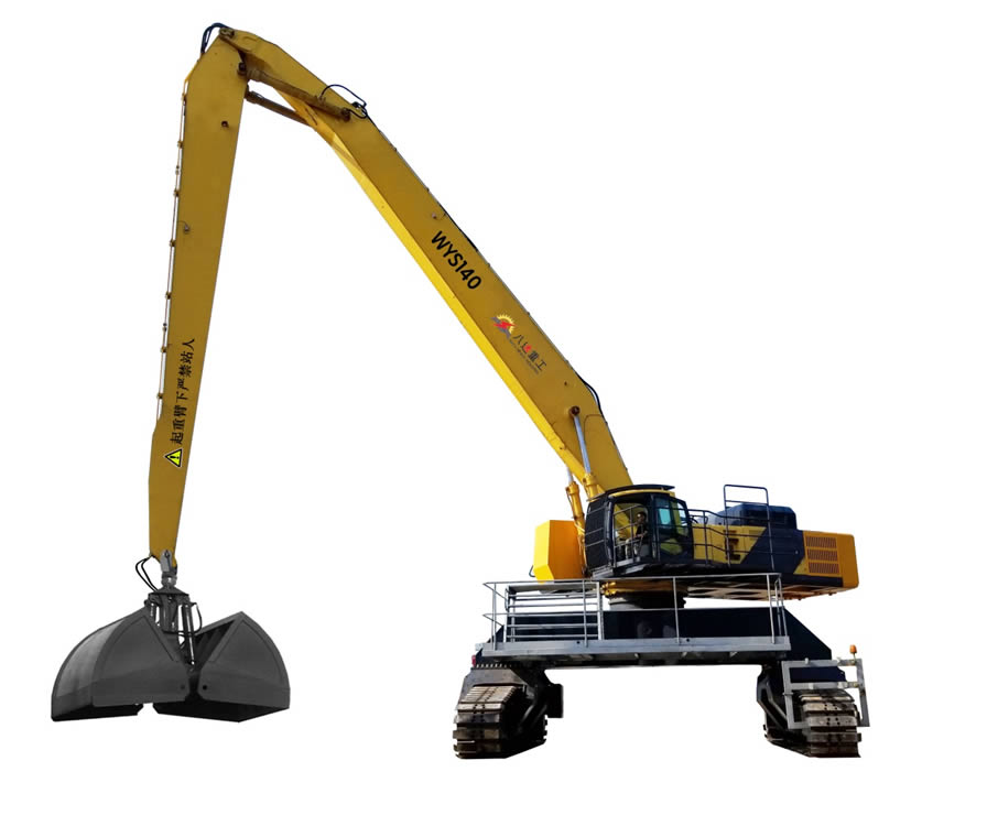 該設(shè)備選用電動作業(yè)安全節(jié)能,可比內(nèi)燃機驅(qū)動節(jié)省 60%的能耗;可快速更換不同用途的液壓抓斗,實現(xiàn)了一機多用功能。總體具有以下特點: